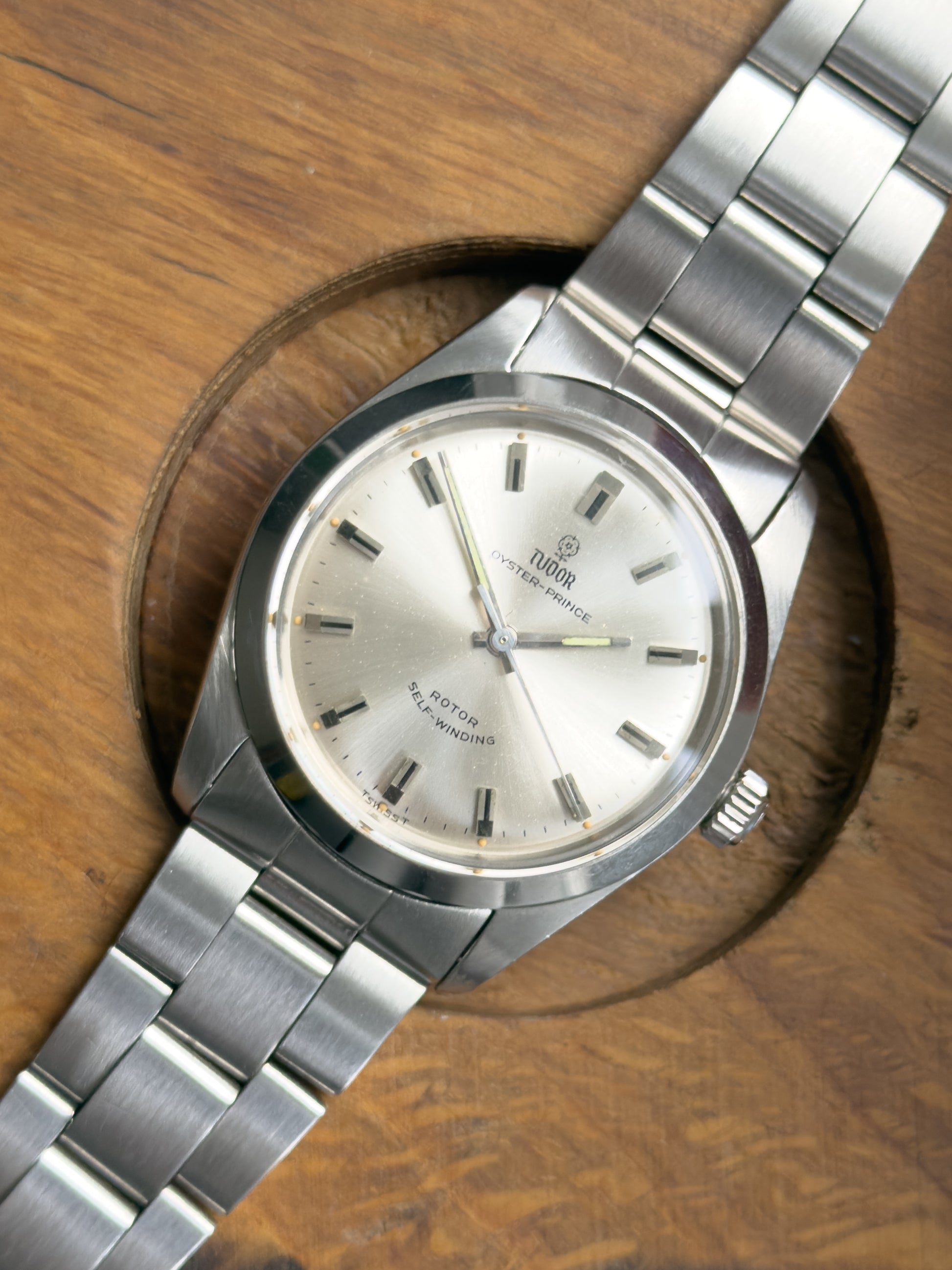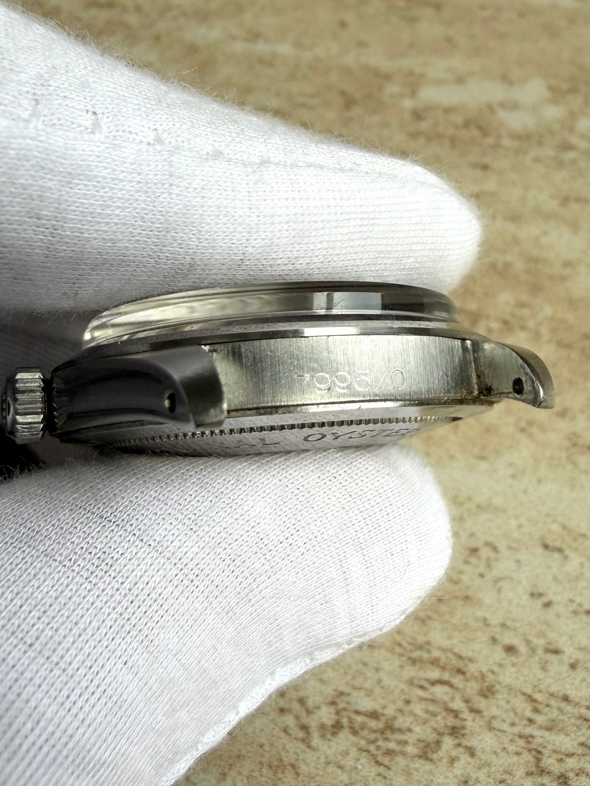 Tudor Oyster-Prince Ref 7995/0 now in stock at WatchBooth. This watch is paired with an original Rolex bracelet which is in excellent clean condition on 357 end links. This piece is enclosed in a Rolex oyster case with a Rolex caseback and crown. The watch is in great original condition throughout with minor signs of wear. The movement is in perfect working order and keeping to time well. The lumed hands are still functioning well. The serial number dates this piece to 1968.