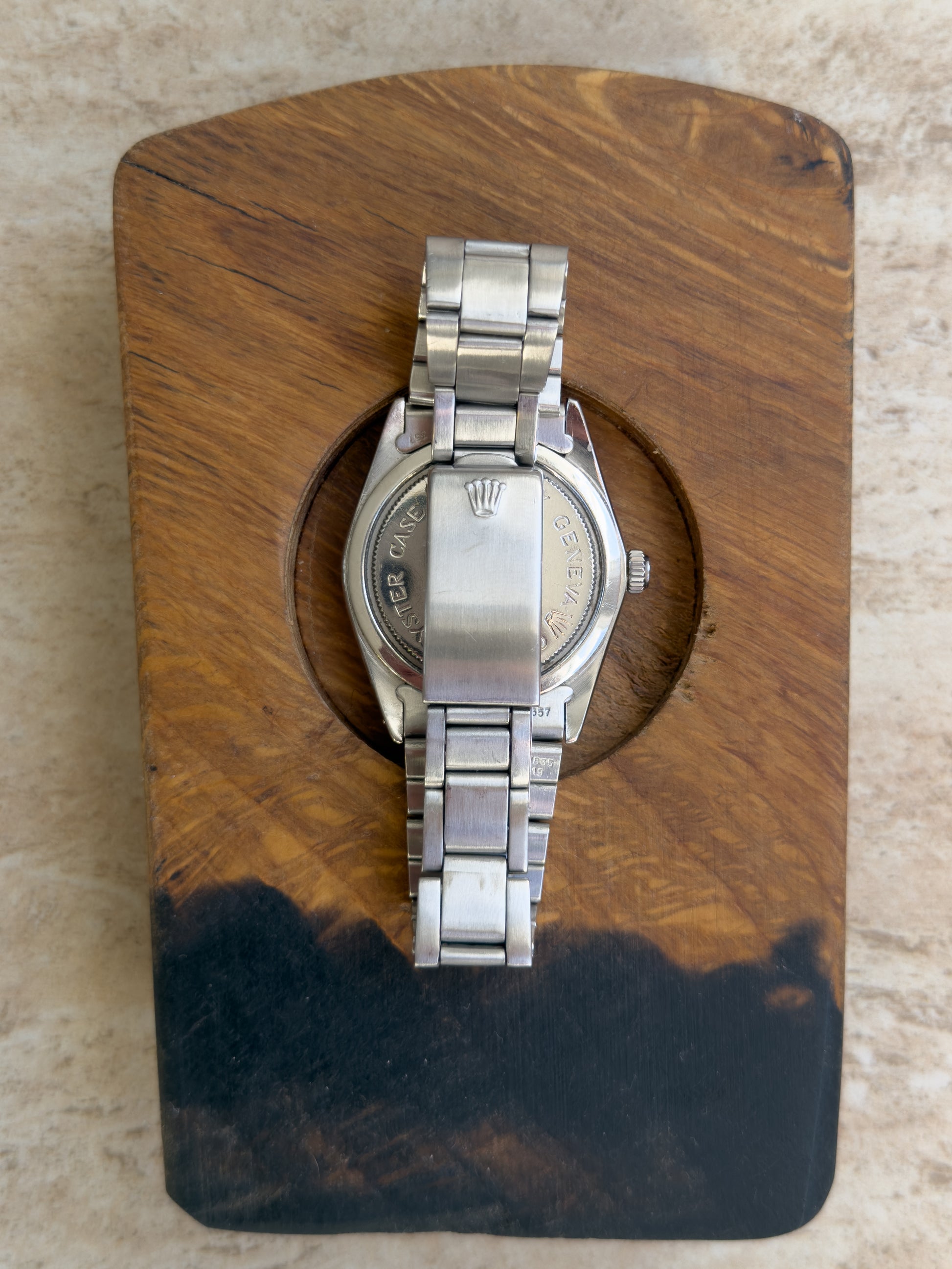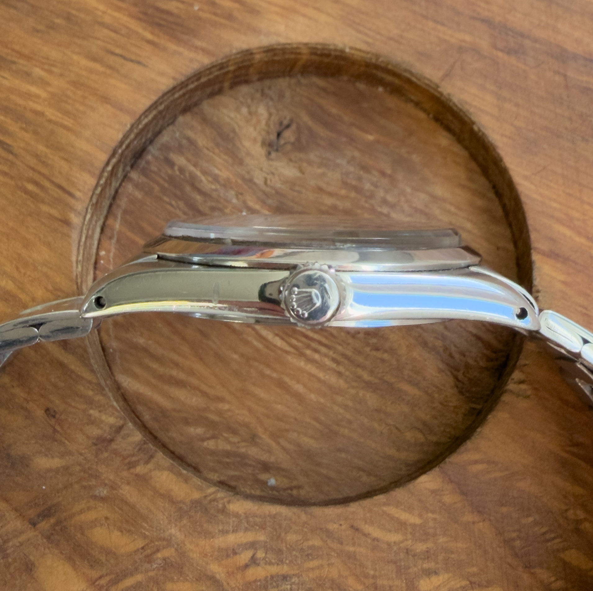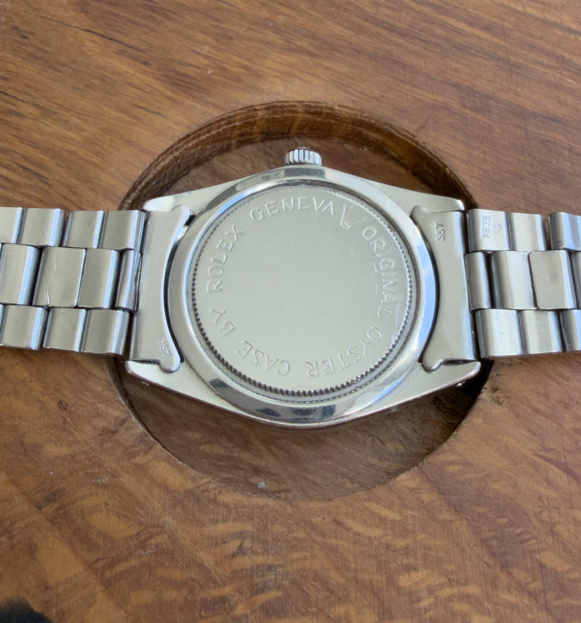 Tudor Prince Oyster model Ref 7991/0 now in stock at WatchBooth. This watch is paired with an original Rolex bracelet and a rare Blue Dial making this an extremely unique and desirable example. This piece is enclosed in a Rolex oyster case with a Rolex caseback and crown. The watch is in great original condition throughout with minor signs of wear. The movement is in perfect working order and keeping to time well. The watch also comes with an additional leather strap and a replacement crystal should you decide to change the original.
