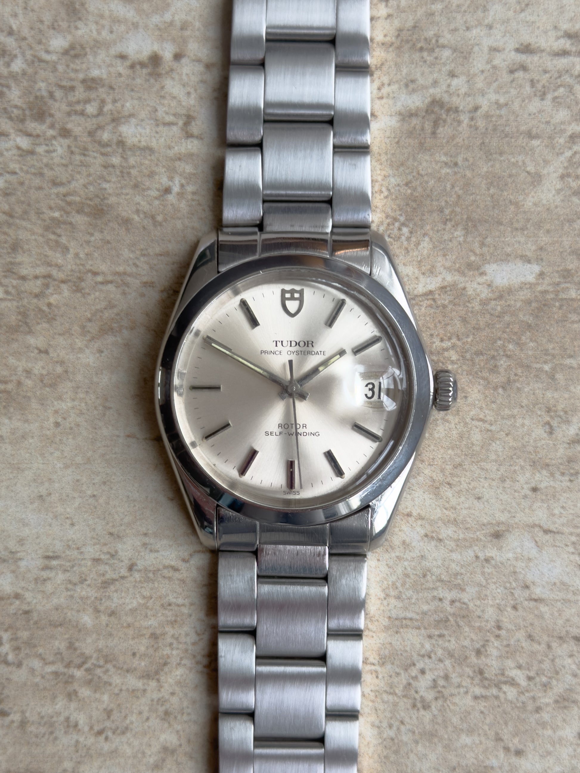 Tudor Prince Oysterdate Ref 90520 now in stock at WatchBooth. This watch is paired with an original Tudor bracelet which is in amazing condition and extremely solid. This piece is enclosed in a Rolex oyster case with a Rolex caseback and crown. The watch is in great original condition throughout with very minor signs of wear, the watch has not been polished and retains its original sharp finishing. The movement is in perfect working order and keeping to time well. This is an oysterdate model with a date complication at the 3 o'clock position which is set by a rare quick-set date complication. The serial number dates this piece to 1980. A service document from 2020 is included with the watch and a insurance valuation guarantee.